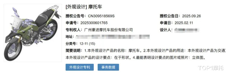 此前专利公告当中出现的猎变新款ADV车型,也是本次米兰车展预告图当中,位于上面的那款新车,这一点从前挡泥板的造型可以对应上。这款车的定位是小排量双缸硬派ADV,拥有较长的前后减震行程,较高的离地间隙,类似拉力赛车的窄车身、高油箱的车体造型,还包括高位前后挡泥板以及原厂钢丝辐条轮等等,很值得期待。另一款新车暂时还没有眉目,只能静待米兰车展时揭晓答案。